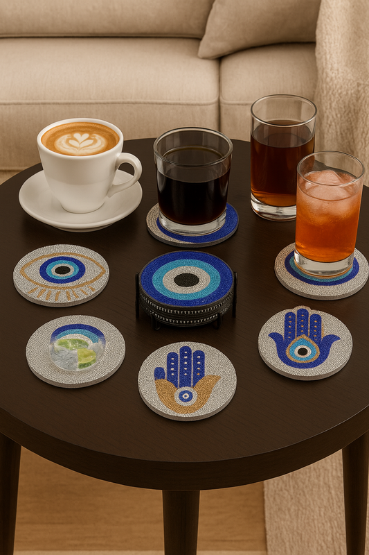6pcs Bohemian Blue Evil Eye Coaster Set