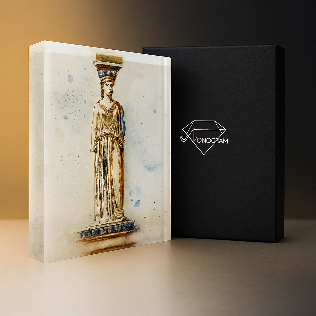 A katyatid (Καρυάτις) is a sculpted female figure that serves as an architectural support, taking the place of a column or pillar. The Greek term karyatides literally means “maidens of Karyai,” referring to an ancient town on the Peloponnese. Karyai was home to a temple dedicated to Artemis Karyatis, the goddess who rejoiced in the dances of the maidens. These Karyatides—the dancing women of Karyai—were said to carry baskets of live reeds upon their heads, as if they themselves were living, graceful extensions of nature.